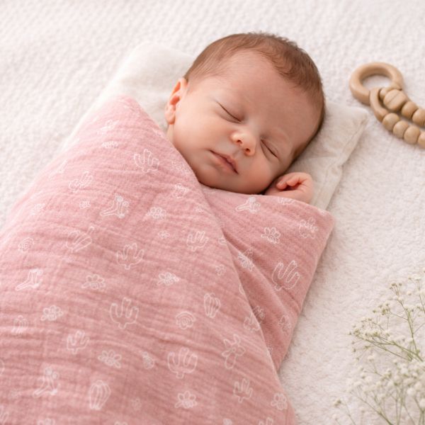 La muselina de 70×70 cm , ligera y transpirable, envuelve al bebé con una sensación de confort natural, perfecta para acompañarle en el día a día: en el cochecito, durante la lactancia o como mantita auxiliar.