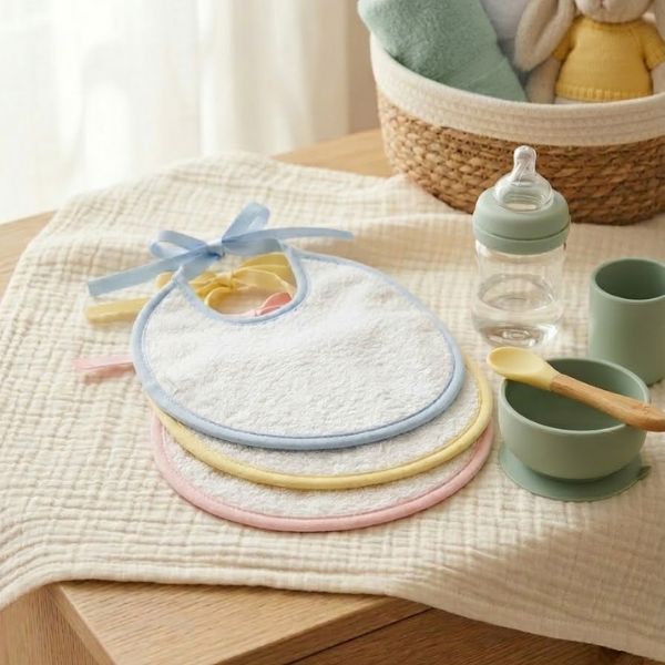 Truco Pro: Si el babero tiene manchas de comida (fruta o verdura), dales un pequeño prelavado a mando con jabón neutro antes de meterlos en la lavadora para que el blanco del rizo se mantenga impecable por más tiempo.